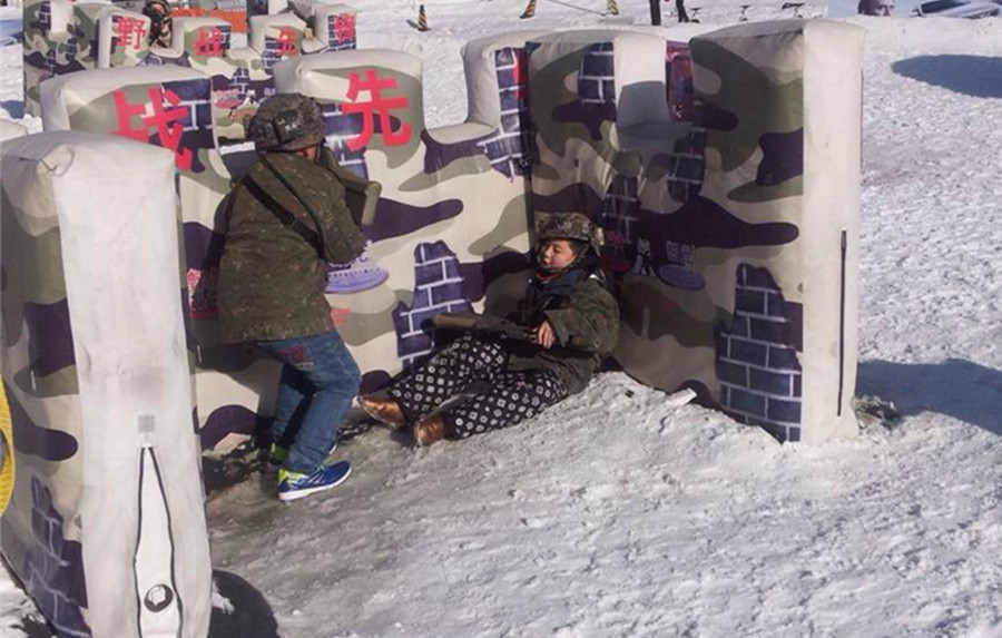 不知你是否和我們一樣,內心有一個潛伏已久的軍人夢,身著帥氣迷彩服,荷槍實彈,手持愛槍,正義在胸,奔越防線,掩護,瞄準,射擊!小伙伴們,現在悄悄地地告訴你,咱現在就不用再做軍人夢了,到鄭開馬拉松冰雪樂園來場實戰演練吧,冰雪真人CS,讓你單調的冬季不再孤單,叫上隊友一起激戰吧!